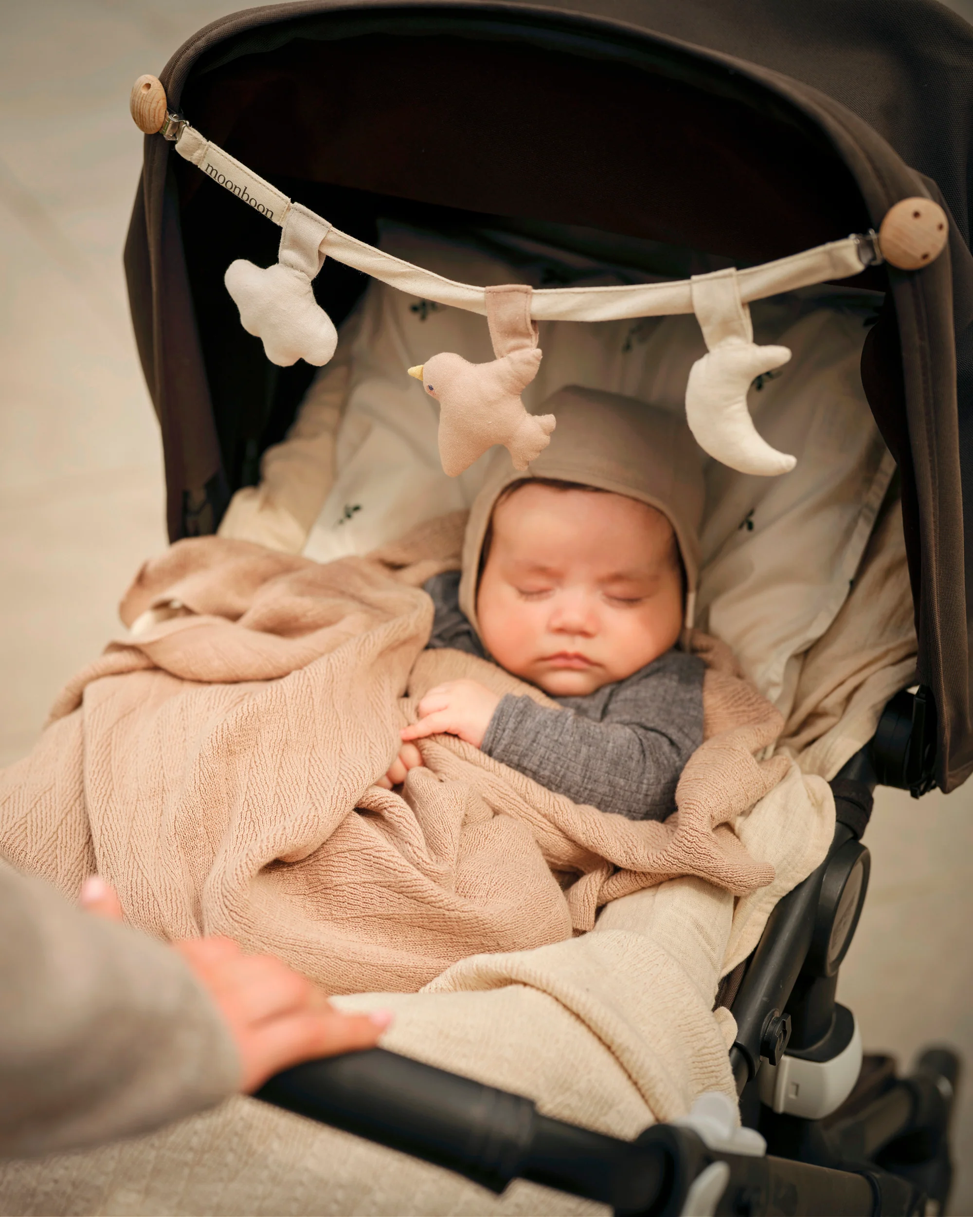 - Gemakkelijk te bevestigen aan wandelwagens, autostoeltjes en de babyhangmat